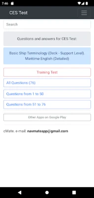 The application contains 76 questions on the topic: Basic Ship Terminology (Deck - Support Level). Maritime English (Detailed). The application is equipped with a convenient search.