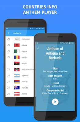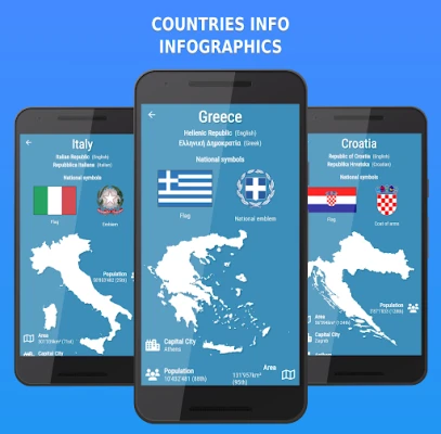 Essential information about different countries around the world, directly on your mobile device. Upon opening the app, users are presented with a list of all the countries around the world, and they can select any country to access its information. The application typically includes a wide range of information about each country, such as: