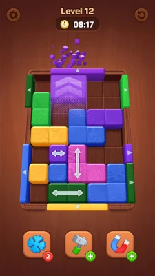 Immersive Wood away Gameplay: Strategically move and align color block to solve engaging puzzle in this captivating color block puzzle game.