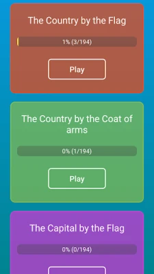 📍 3 game modes which will help you to learn the flags, emblems and capitals of countries.